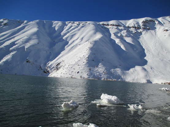 شب سرد زیر10 درجه ای را باگرمای بخاری نفتی که داخل اتاق بود سپری کردیم .شب باد شروع به وزیدن کرد وباعث ایجاد موج های زیاد شد واین باعث از بین رفتن یخهای حاشیه دریاچه شد.صبح بعد از صرف صبحانه ودیدن دریاچه مناظر دیدنی به سمت چشمه حرکت کردیم . گامهای آخر را با آقای اسماعیل وند که به استقبال ما آمده بود طی نمودیم و بااسرار زیاد ایشان نهار را مهمانش بودیم . بزرگی ایشان وخانواده محترمشان را هرگز فراموش نخواهیم کرد.